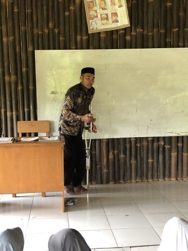 Meski jalannya tertatih Pak Ahmad selalu semangat untuk mengajar, baginya sebagian hidupnya adalah mengabdi. setiap hari beliau berusaha untuk terus menjadi guru yang baik meskipun hanya digaji 300 ribu per bulannya.