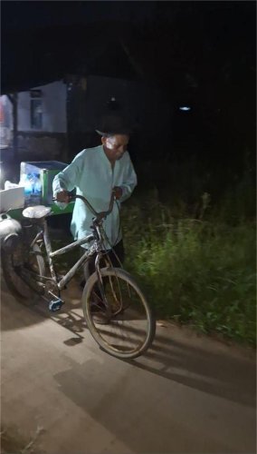 Abah berkeliling menggunakan sepedahnya. Namun, beliau tidak menggowes sepedahnya, karena ia pernah jatuh sampai kepalanya bocor. Sehingga, Abah hanya mendorong sepedahnya saja. Meski lelah, beliau tidak pernah berhenti berjuang demi menafkahi keluarganya.