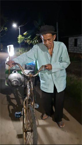 Abah Suwandi (77) kini berjualan mi tek-tek yang setiap hari berkeliling dari maghrib hingga larut malam, bahkan sering baru pulang saat adzan subuh berkumandang. Penghasilannya sangat tidak menentu, semalaman berkeliling terkadang hanya mendapatkan 10 ribu saja.
